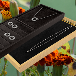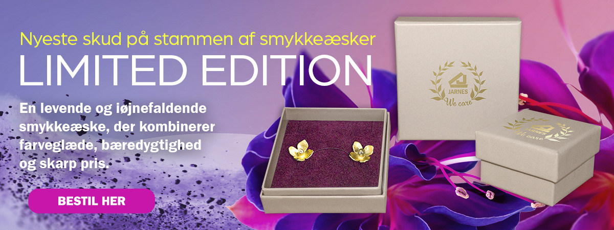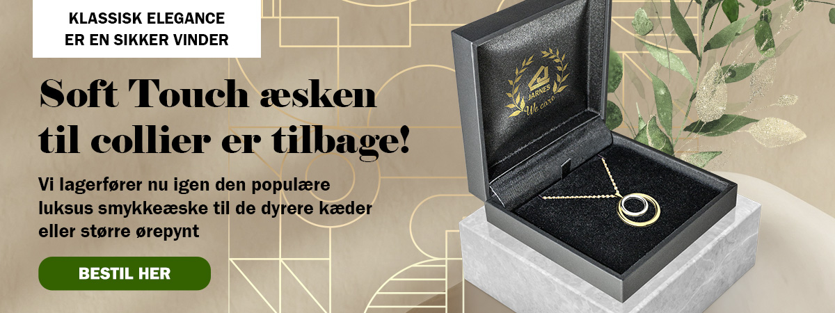On our webshop, you will find Jarnes' large range of standard products for the jewelry industry and the goldsmith shop. You will find both the inexpensive jewelry boxes and the more exclusive ones. Additionally, we offer display systems, jewelry trays, and showcases for the goldsmith as well as a selection of boxes and packaging for confectionery and chocolate.